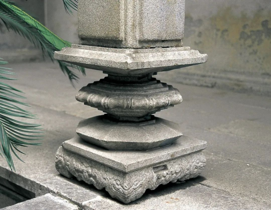 岭南建筑采用高柱础, 造型纤细,它的造型与岭南天气潮湿多雨有关