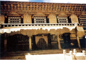 西藏萨迦寺大经堂入口处有石阶和柱廊