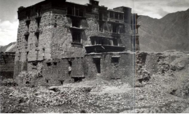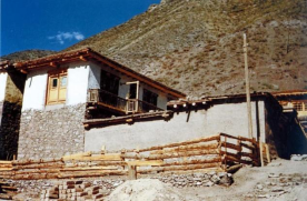 西藏亚东民居用木材接出外廊,与石墙形成材质对比,别具一格